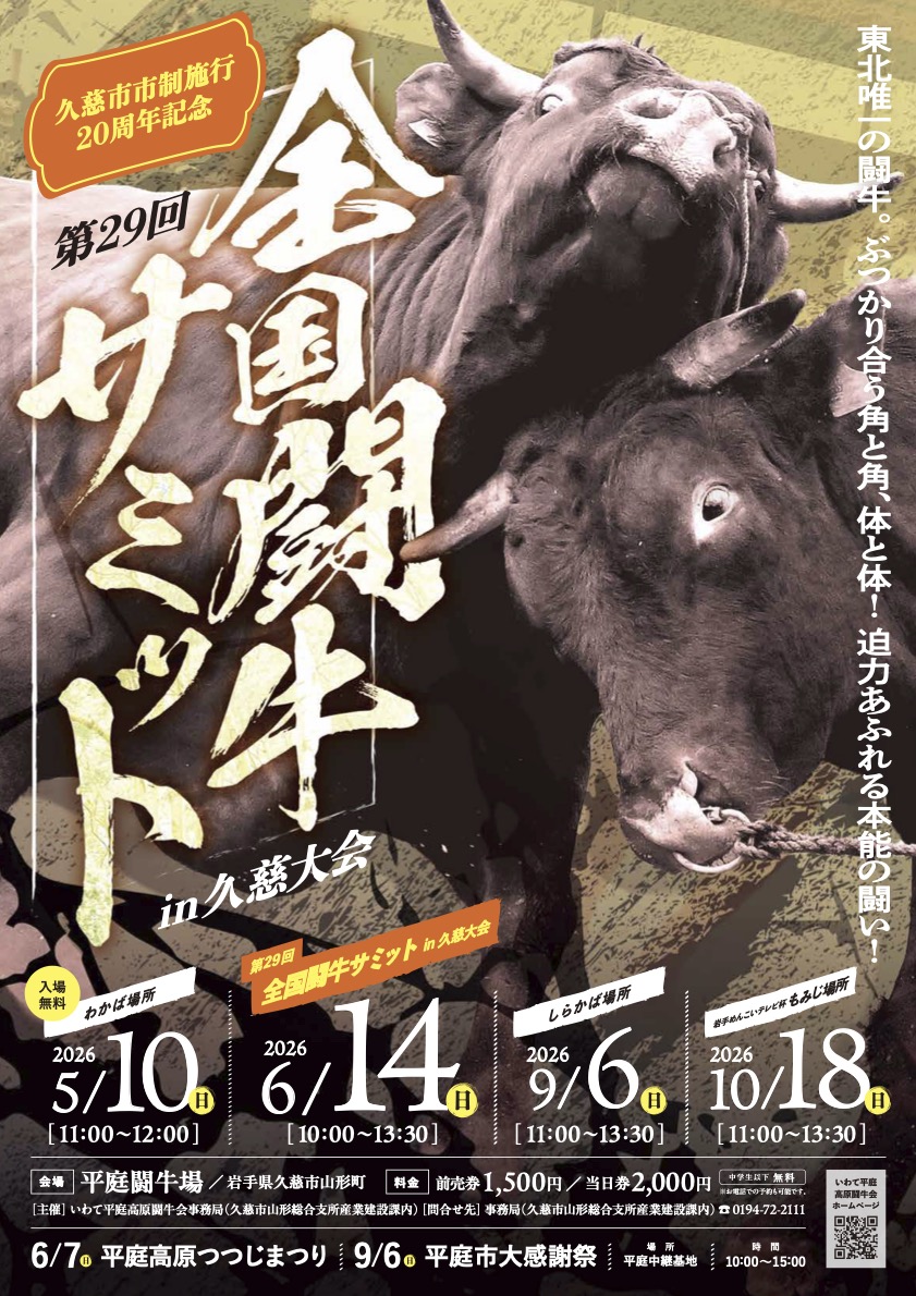 令和8年6月14日は10年振りとなる「全国闘牛サミットin久慈大会」が開催されます。
