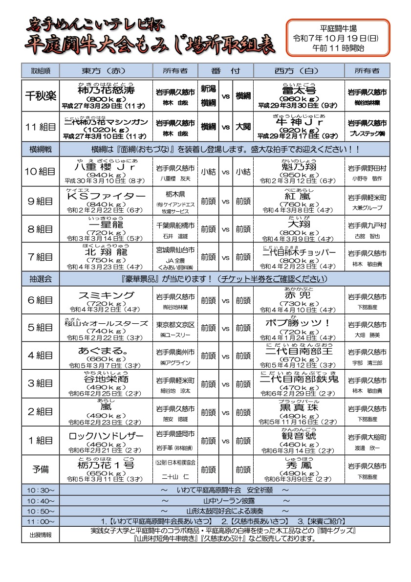 「平庭闘牛大会もみじ場所」を下記のとおり開催いたします。